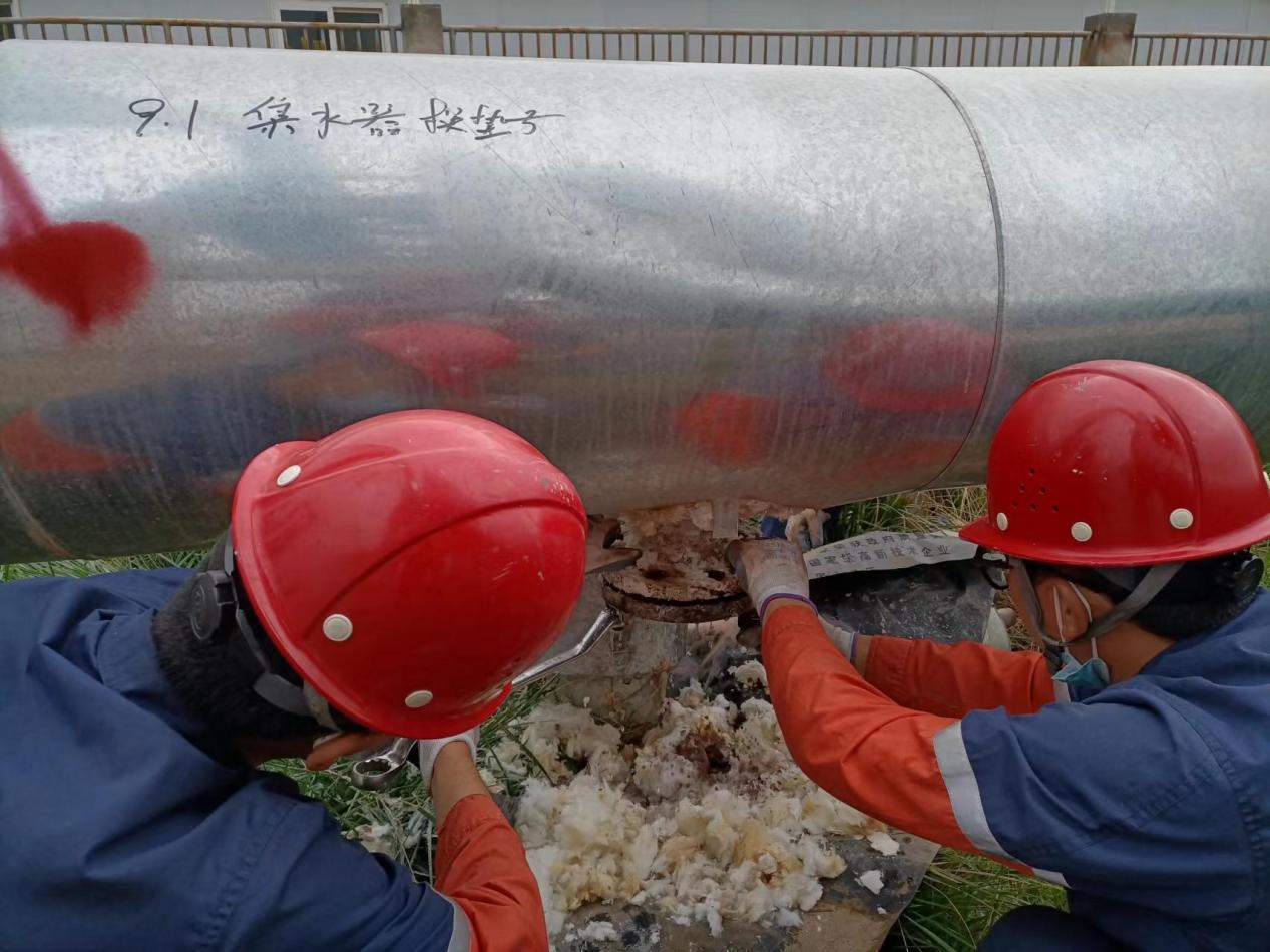 9月15日13時(shí)30分,在全體參檢人員的共同努力下,順利高效地完成了化工園區(qū)熱力管網(wǎng)64臺(tái)DN25-DN50疏水閥及120片墊片更換、集水器墊片更換,修復(fù)密封面5組、桁架位移10處,改造加裝蒸汽截止閥6處,旋轉(zhuǎn)補(bǔ)償器傾斜復(fù)位并加裝4組門型支撐架。